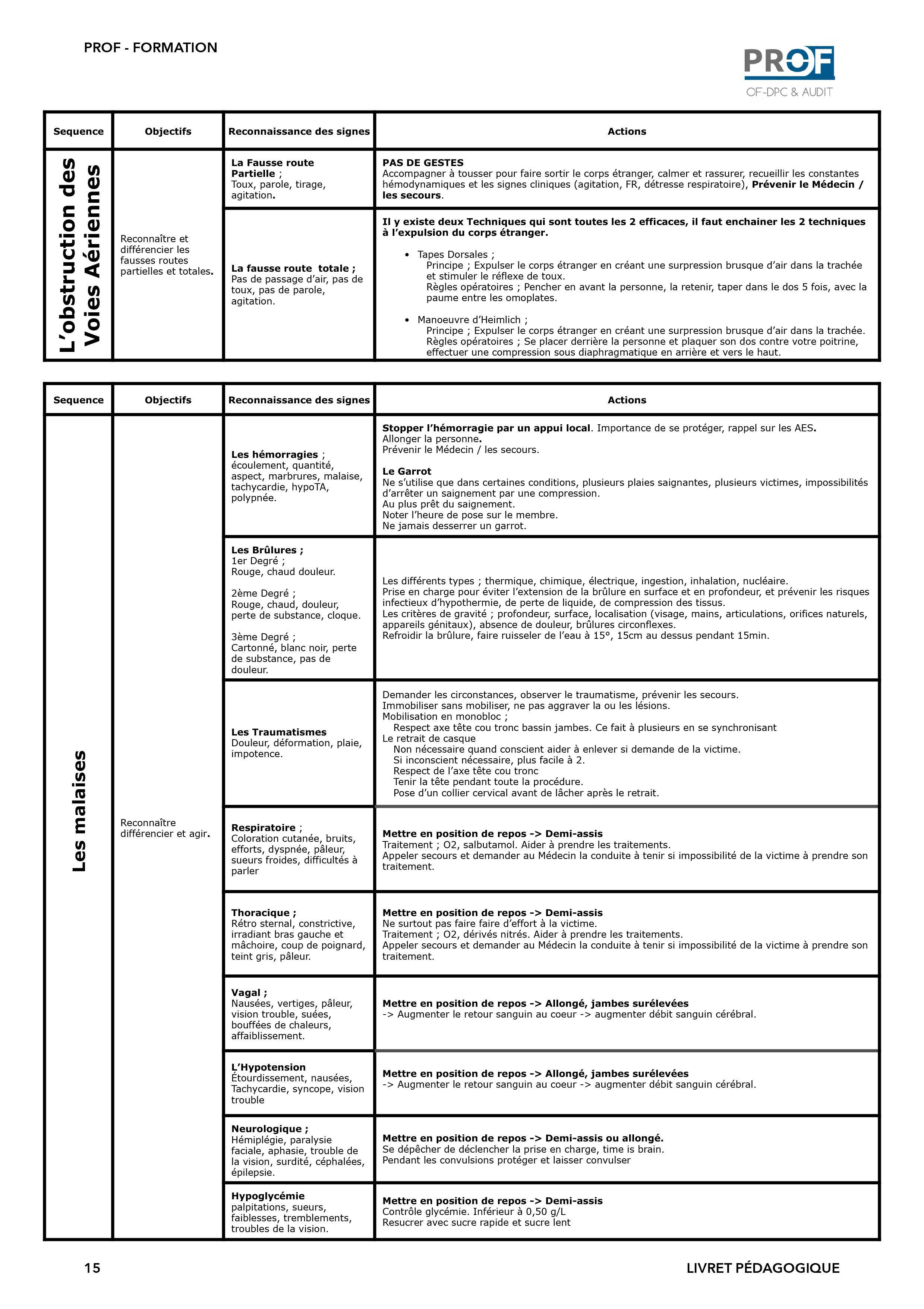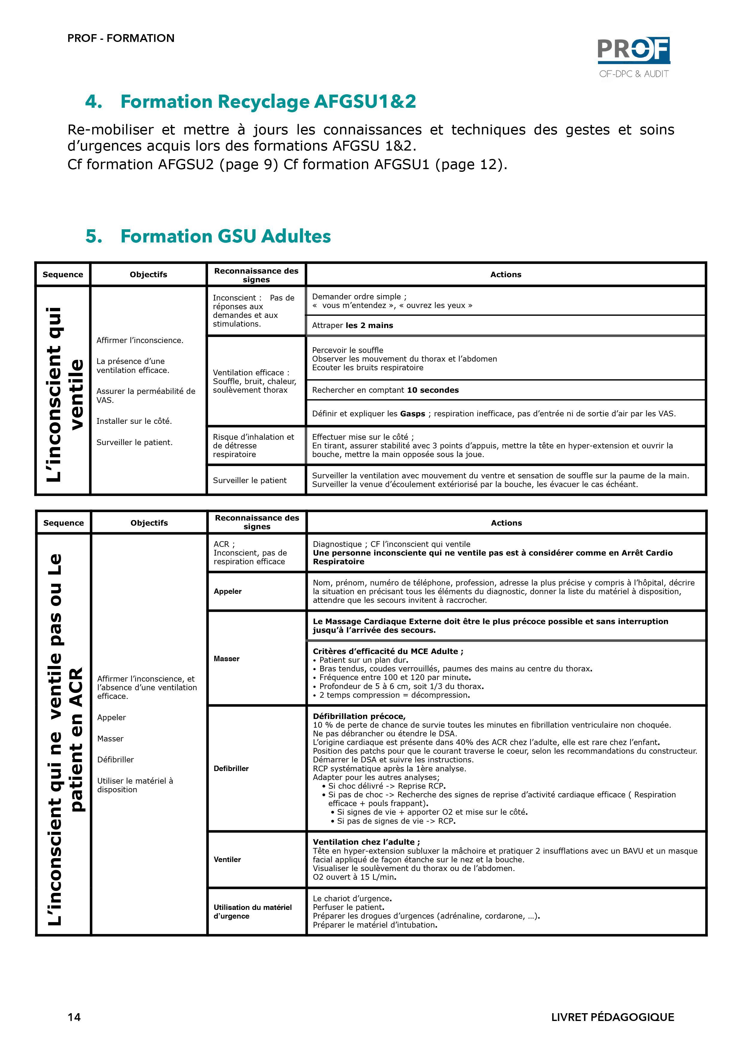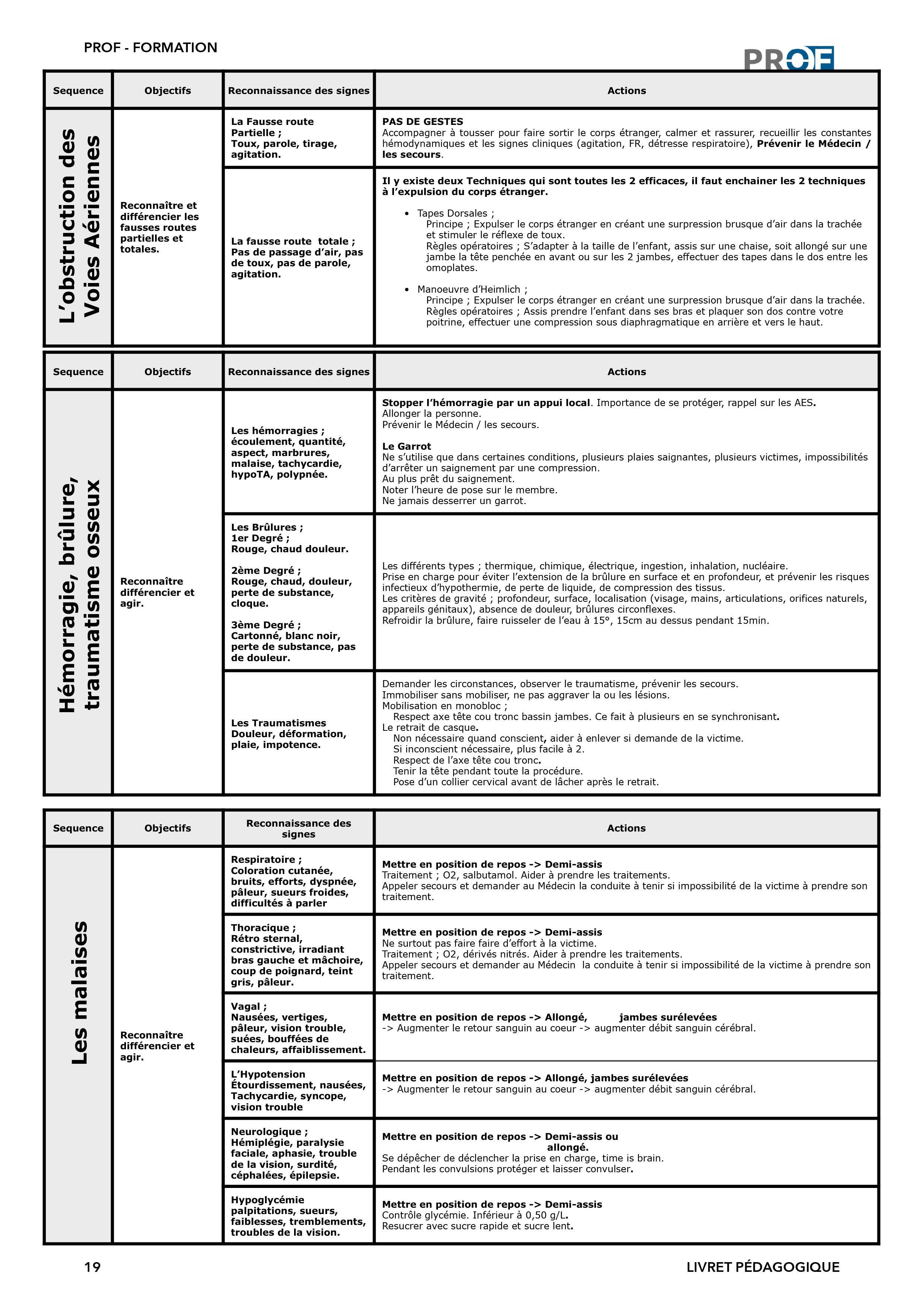 L’hygiène et la protection primordial avec la COVID-19, l’alerte et l’organisation en équipe sont traitées lors de chaque séquence, en lien avec le thème. Nous mettons régulièrement a jour nos contenus sur ces sujets avec les recommandations des ANCESU.